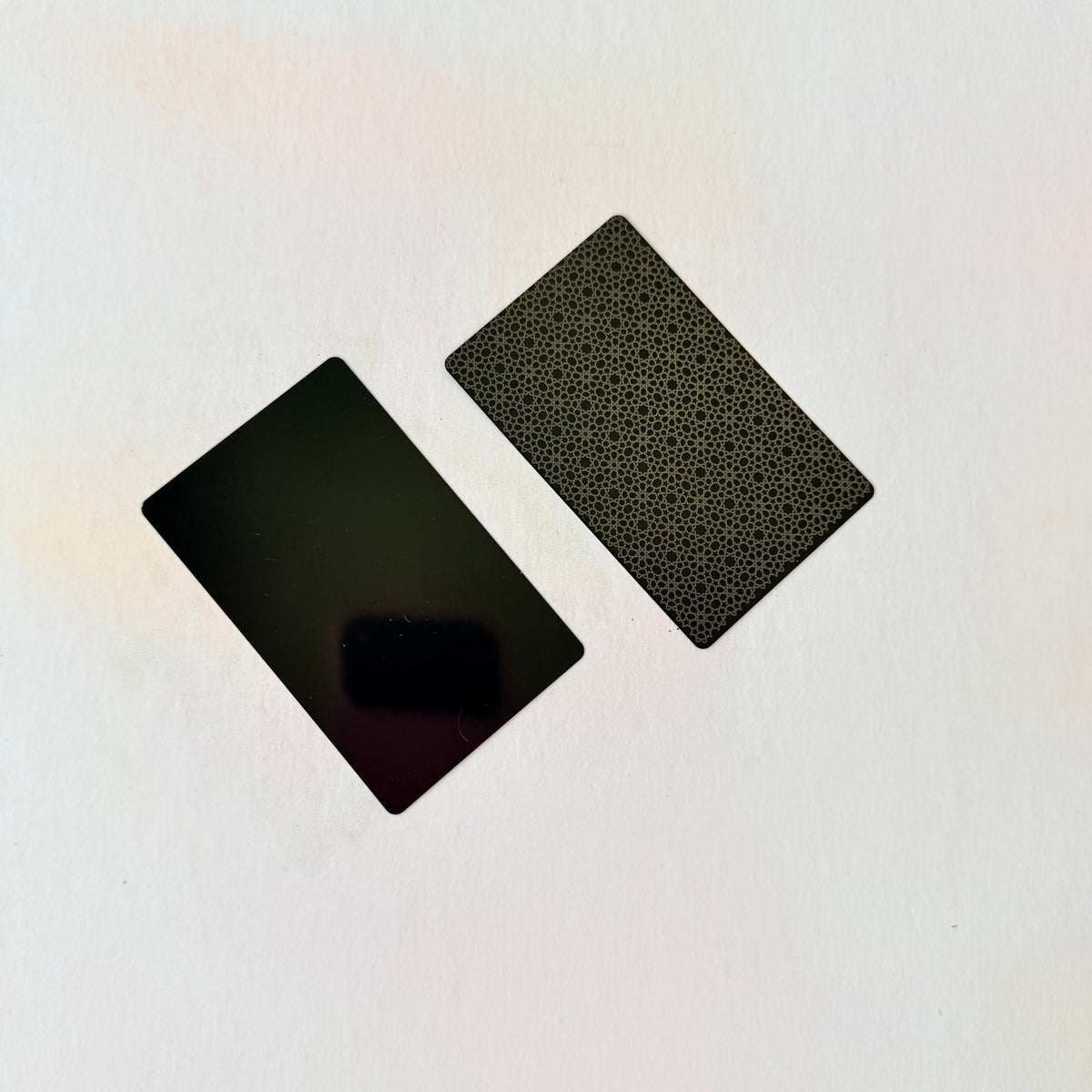 Anodised black aluminium at 0.2mm — slim enough to carry in a standard card holder or wallet, solid enough to feel deliberately made rather than just printed. Laser engraving creates the detail: your name, logo, contact information, or design cut into the surface with a precision that paper can't replicate. Twenty per pack.