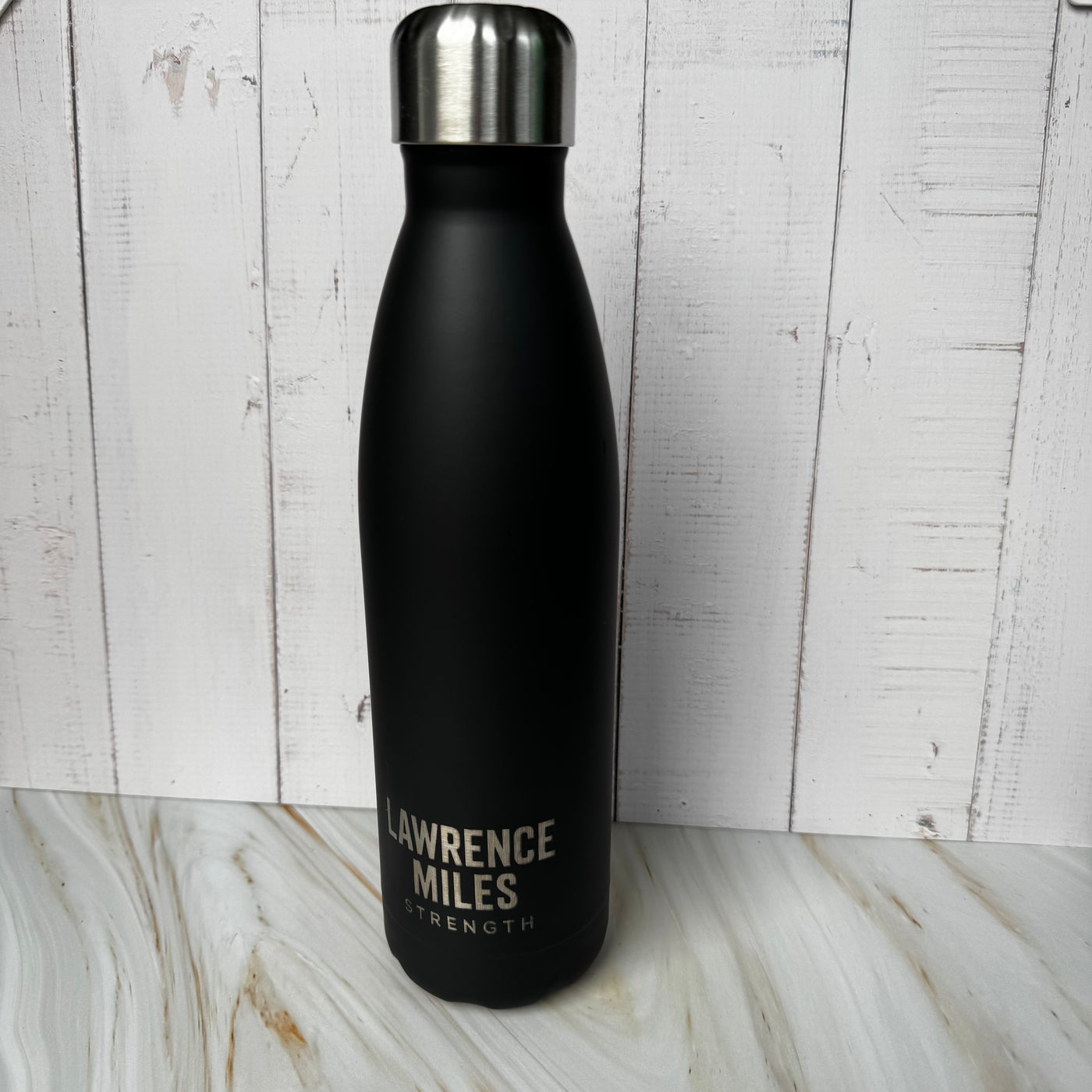Crafted from durable stainless steel with a soft-touch matte finish, the bottle offers a comfortable grip and a refined look. Double-wall insulation helps keep drinks cold for up to 24 hours or hot for up to 12 hours, while precise laser engraving adds a permanent personalised detail.