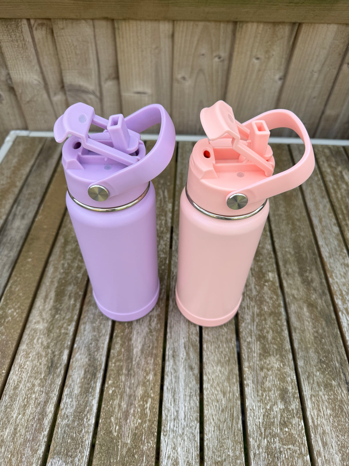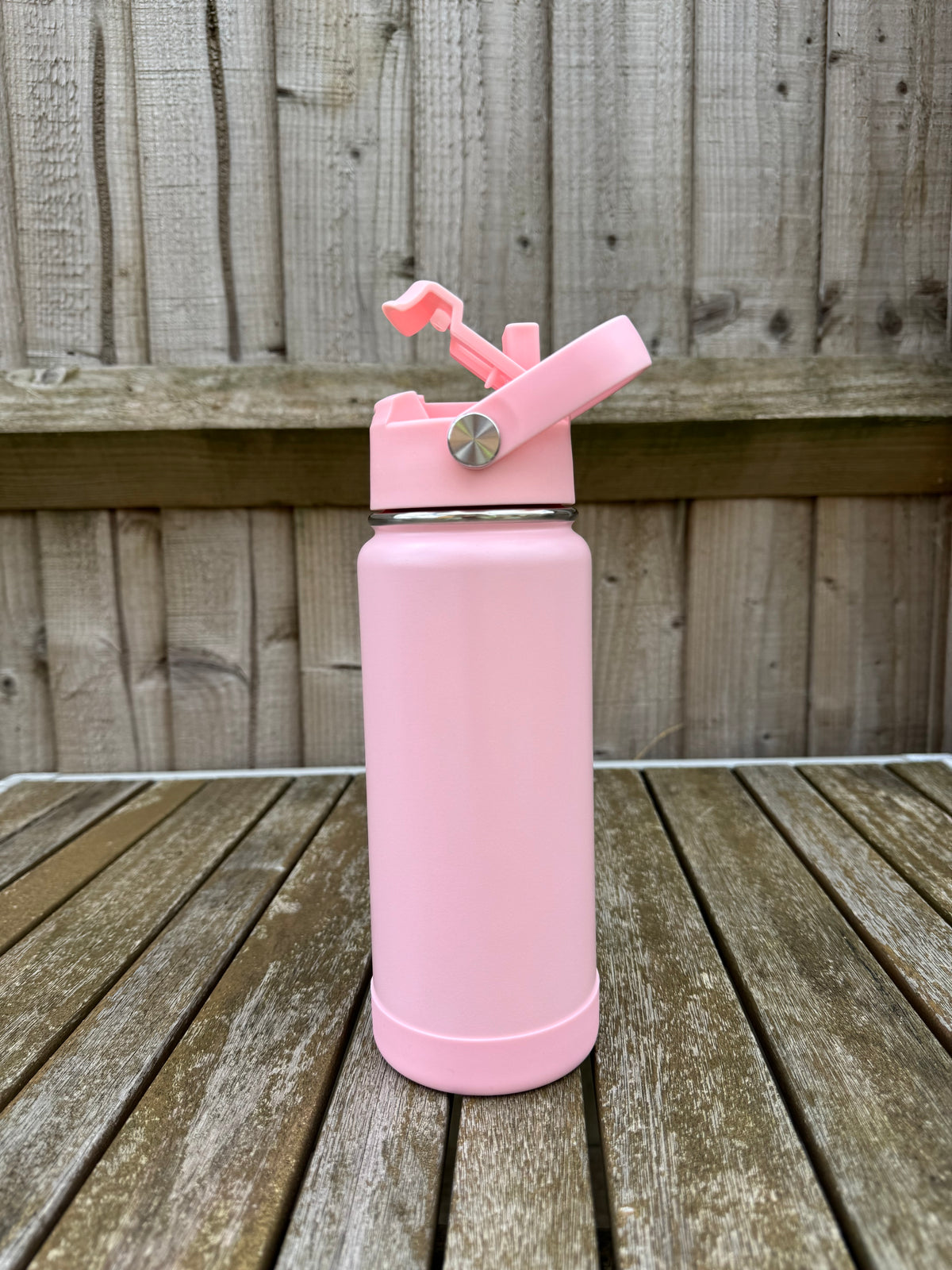 This 600ml insulated stainless steel bottle keeps drinks cold for up to 24 hours and hot for 12 hours, making it ideal for school, gym, travel, or gifting. Personalise with a name or text of your choice to make it uniquely yours.